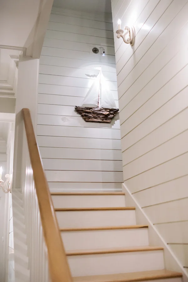Original works of art are featured throughout the house. This is a custom piece by Suzanne Hughes Sullivan.